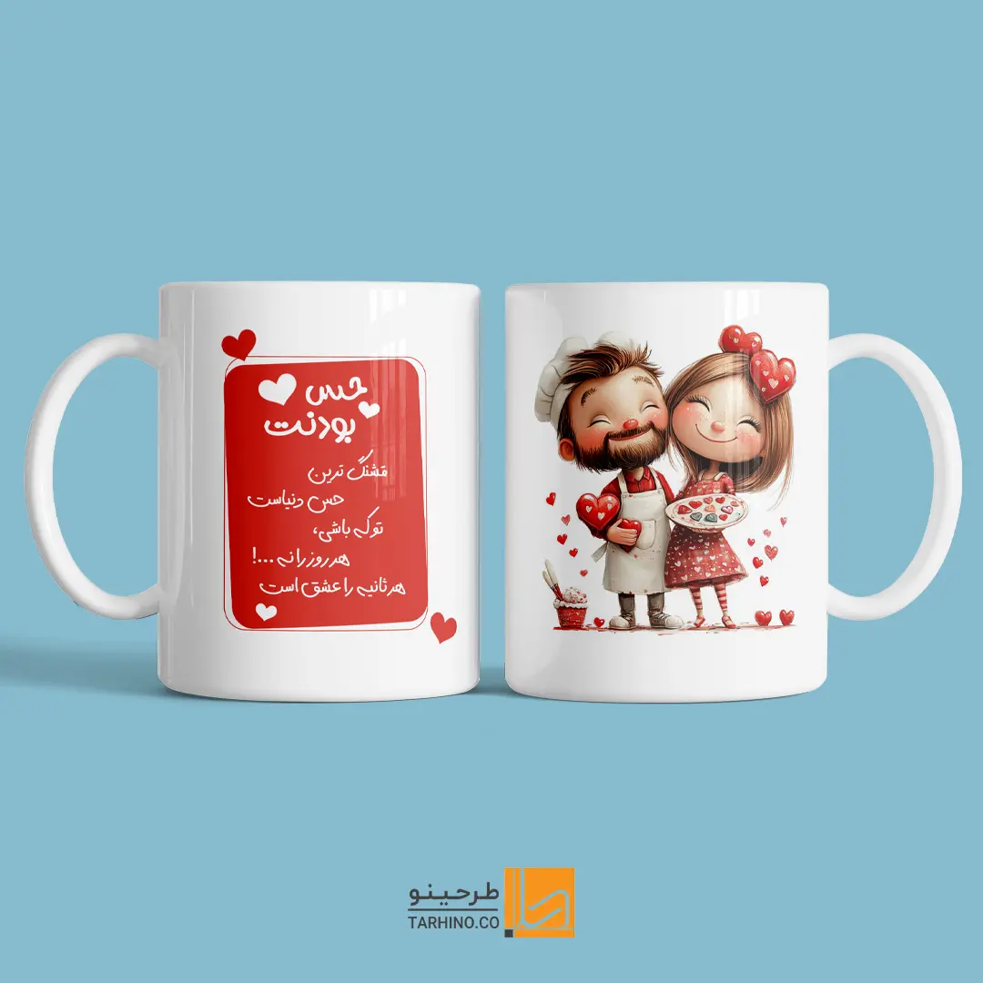 ماگ ولنتاین با متن نوشته حس بودنت قشنگترین حس دنیاست